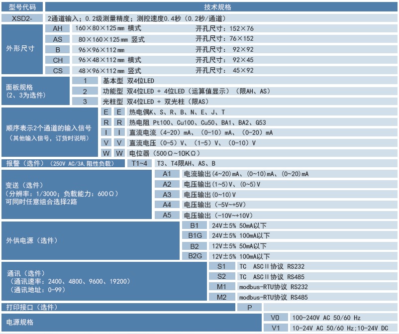 XSD4/ | 2通道输入,双显示 | ||||||||||||||||||